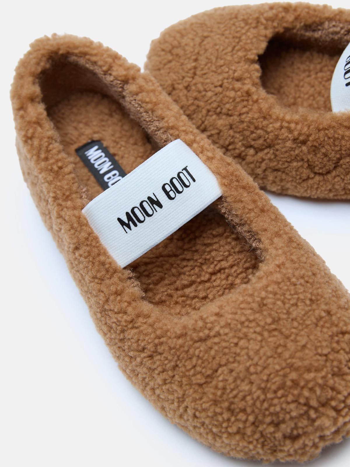 Le sottili suole in gomma richiamano l'ispirazione streetwear, assicurando un passo versatile e leggero. Le ballerine Moon Boot in pelliccia cognac sono l'accessorio sorprendente che ti accompagna con grazia, dalla città al cocktail, sfidando le convenzioni.