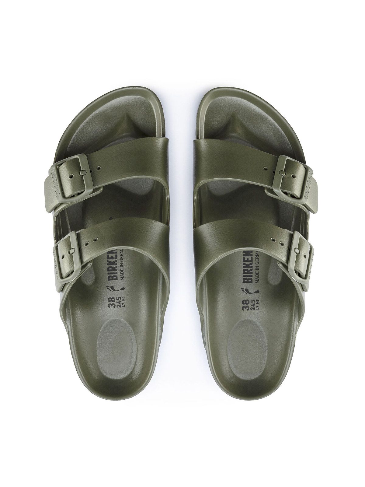Le Arizona EVA Birkenstock Khaki da donna propongono una versione fresca e inedita di uno dei modelli più amati del marchio, grazie a una costruzione completamente in EVA: un materiale all’avanguardia, ultraleggero, impermeabile, inodore e delicato sulla pelle. Il design monoblocco combina praticità ed estetica, garantendo grande libertà di movimento e un comfort che accompagna ogni passo. Nonostante l’impiego di una componente tecnica e moderna, la forma resta fedele alla silhouette storica ispirata al celebre modello in sughero, preservando la tipica ergonomia che ha reso BIRKENSTOCK sinonimo di benessere.