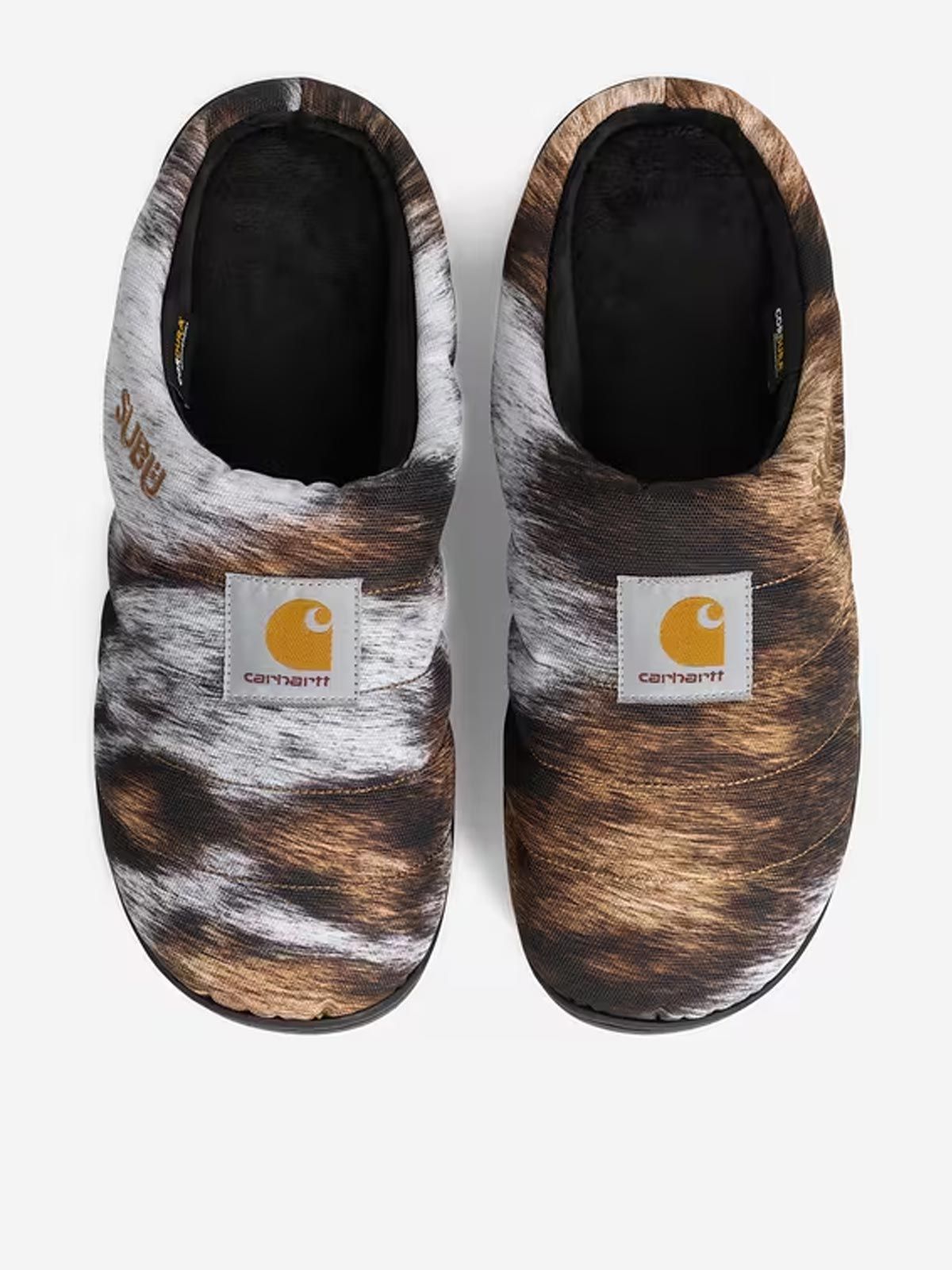 Ridefinendo il concetto di comfort per la casa e l'esterno, le ciabatte Carhartt Cordura® Slippers nascono dalla prestigiosa collaborazione tra Carhartt WIP (implicitamente, data la presenza dell'etichetta quadrata) e il rinomato brand giapponese di calzature Subu.