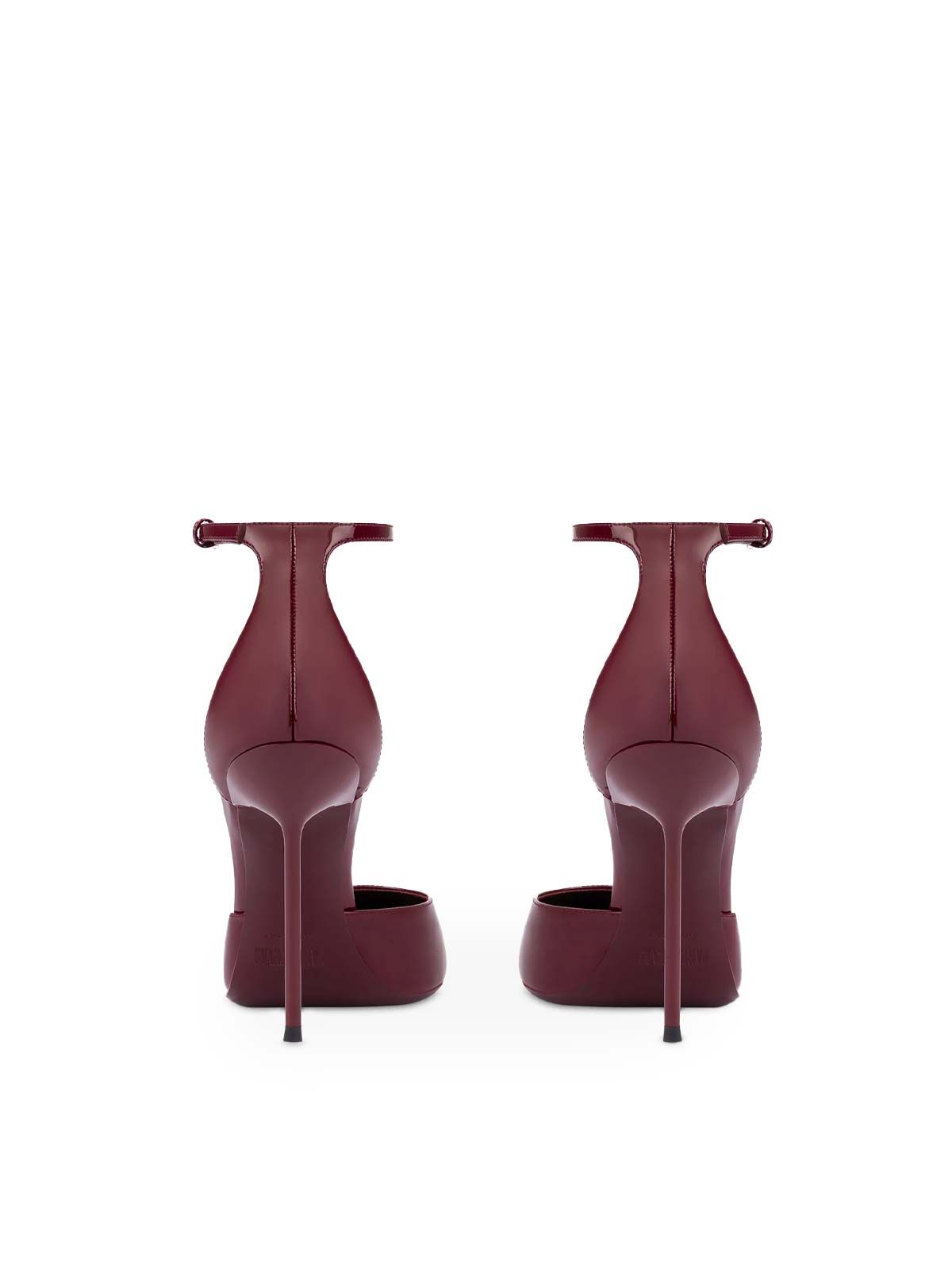 Il tacco a spillo da 105 mm, finemente rivestito, slancia la figura con una silhouette audace e affascinante. Realizzate con maestria in Italia, queste pumps a punta sono sinonimo di qualità artigianale e attenzione ai dettagli. Il colore Rouge Noir aggiunge un'aura di mistero e versatilità, rendendole ideali per ogni occasione speciale.