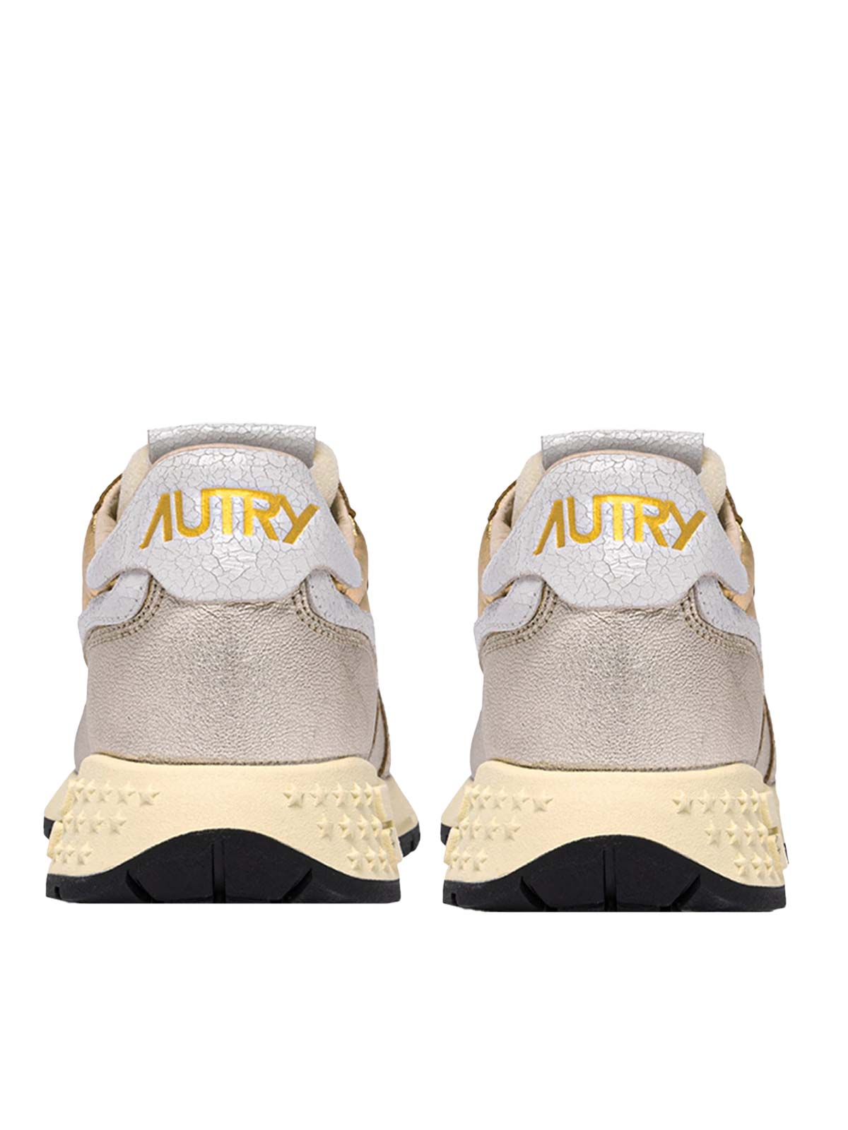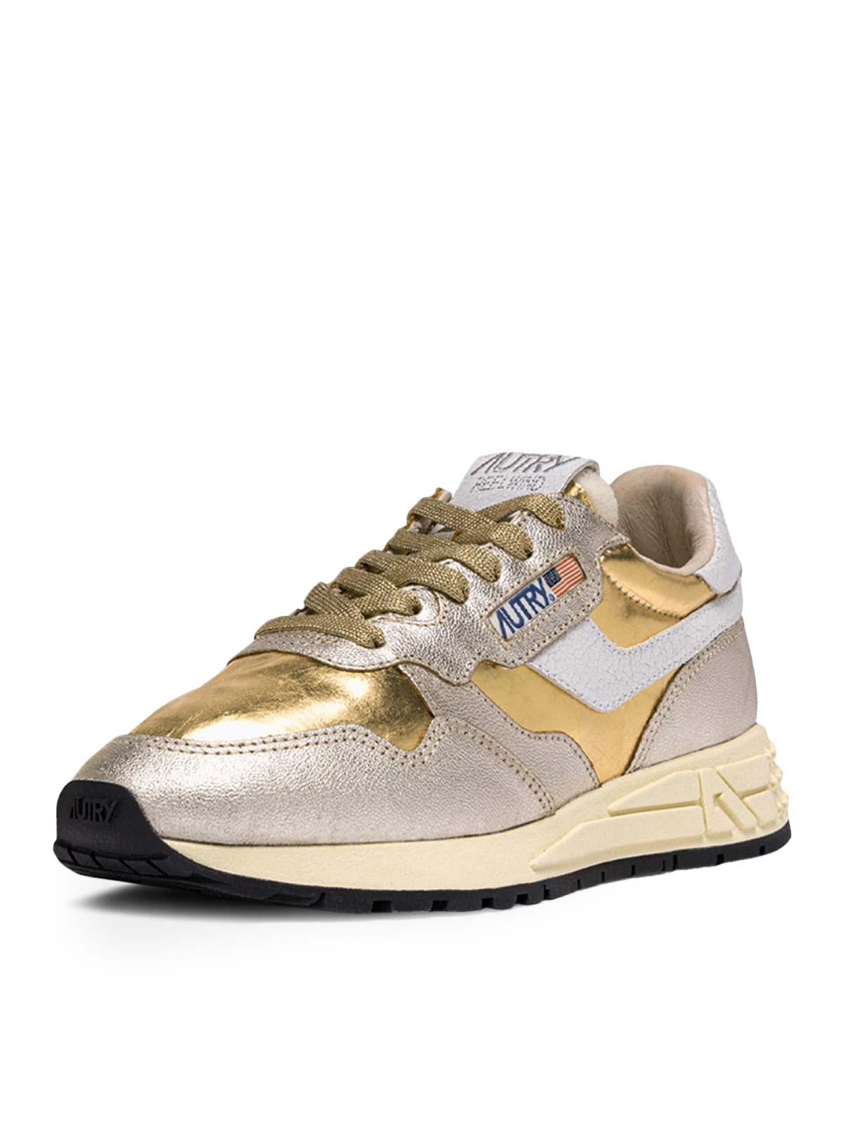 Progettate per accompagnare un lifestyle dinamico, le Autry Reelwind Low oro metallizzato si distinguono per una silhouette affusolata che si fonde impeccabilmente con una struttura orientata alla performance, assicurandoti una libertà di movimento senza precedenti. Ogni tuo passo è supportato da una suola in gomma con battistrada scolpito, che non è solo funzionale per un grip ottimale ma anche un vero e proprio elemento di design. Qui, l'iconica A-arrow di Autry viene reinventata in una veste grafica e contemporanea, trasformando la suola in un dettaglio stilistico di forte impatto.