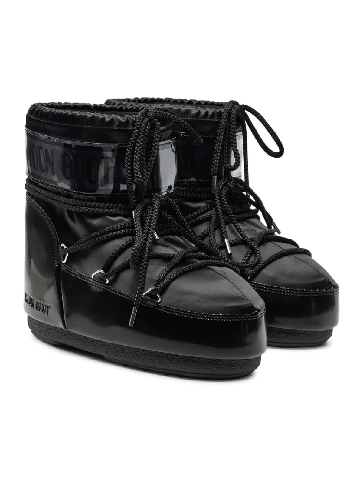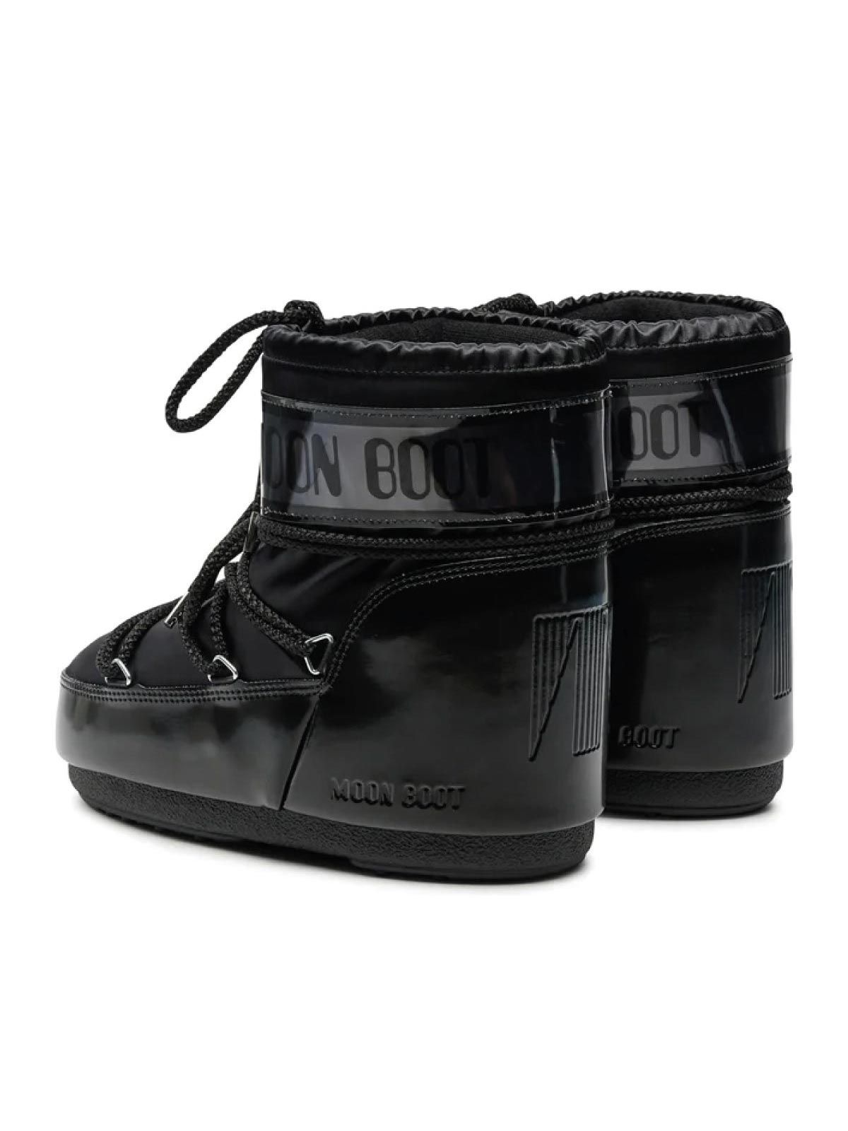 Un passo dalla Terra alla Luna e viceversa. I doposci Icon Low Glance Moon Boot neri in raso sorprendono chi li indossa e chi li guarda, unendo praticità e resistenza tipiche del brand a un tocco elegante dato dal raso lucido. I dettagli iconici, come occhielli in metallo, lacci tubolari intrecciati e il logo Moon Boot sulla parte alta, rafforzano l’identità di un modello autentico.