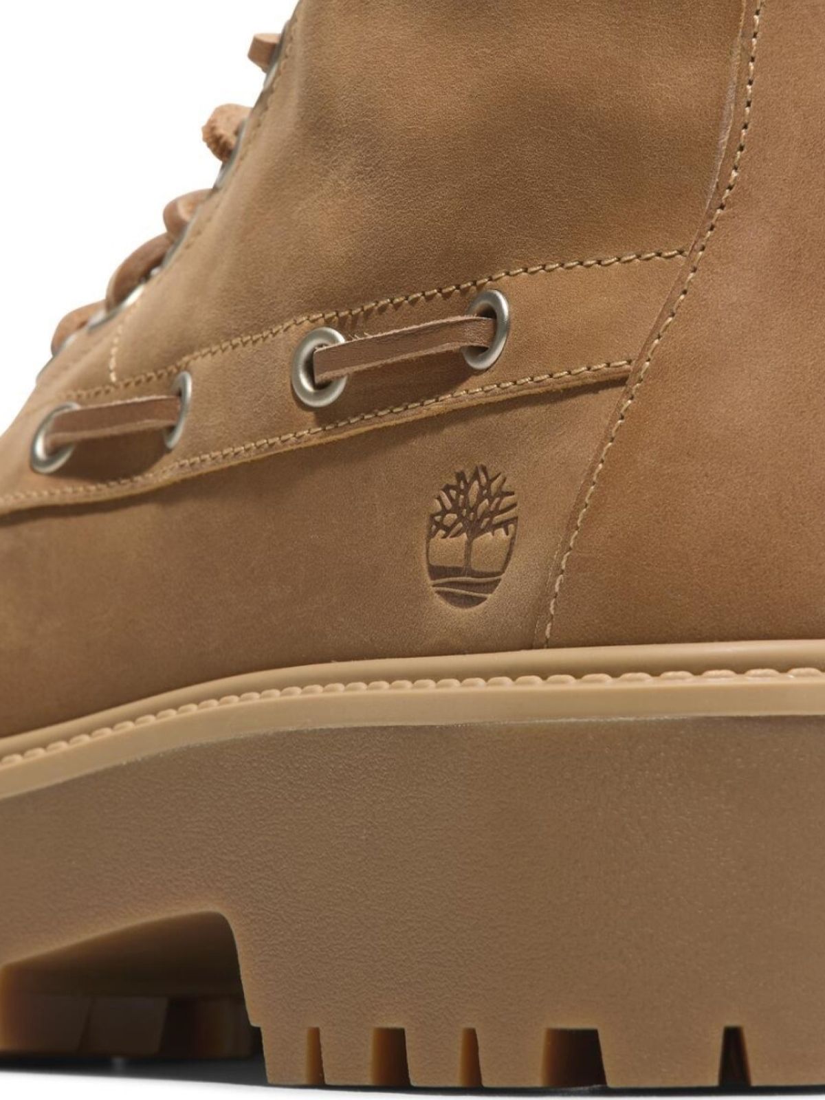 - Tomaia ecosostenibile: Realizzata in Premium Leather Timberland® e tessuto ReBOTL™ (almeno 50% di plastica PET riciclata).